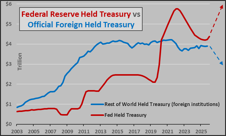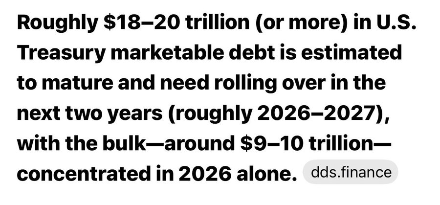 Bons du Trésor américain : – Le Japon vend – La Chine vend – Les États du Golfe vendent Et nous devons encore refinancer 20 000 milliards de dollars au cours des 24 prochains mois.