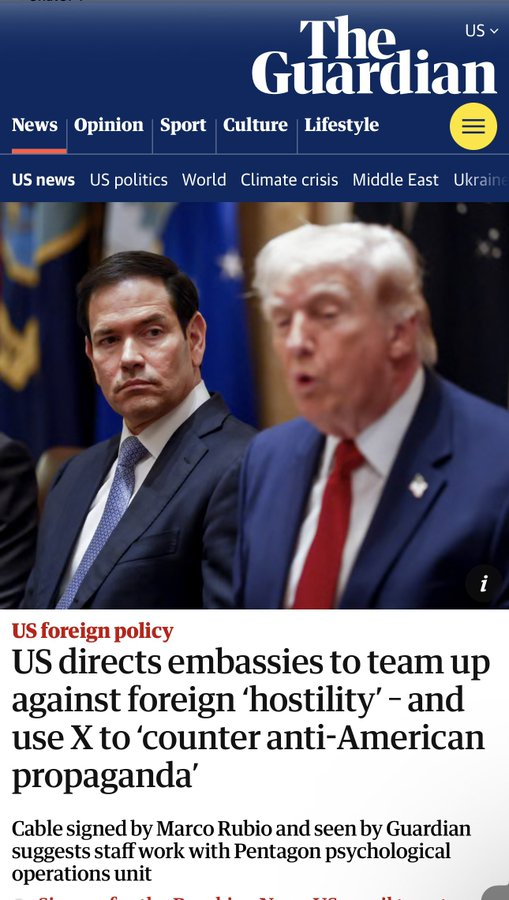La directive demande aux diplomates de collaborer avec l’unité d’opérations psychologiques de l’armée américaine et d’utiliser X — propriété d’Elon Musk — comme outil clé, la décrivant comme une manière « innovante » de contrer la désinformation.