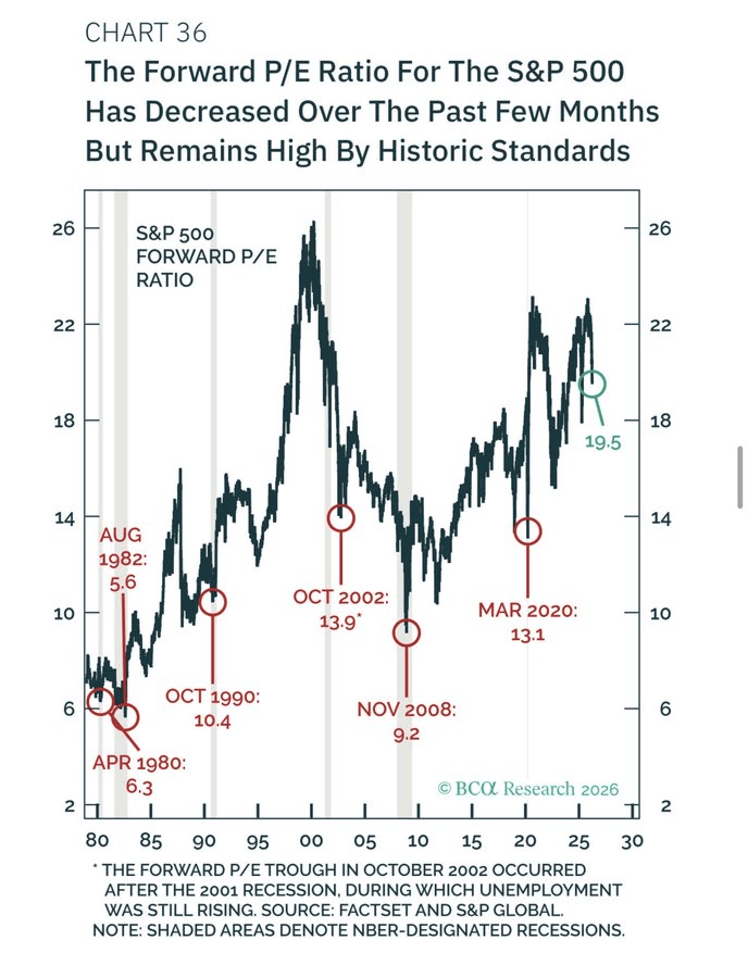 Le ratio cours/bénéfice prospectif du S&P 500 est de 19,5x.