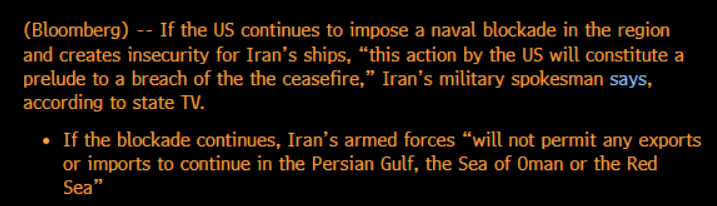 C’est vraiment significatif. Cette menace n’est peut etre qu’une tactique de négociation. Mais une fermeture simultanée du détroit d’Ormuz et du Bab el-Mandeb signifierait l’extinction des feux (littéralement) pour l’économie mondiale en quelques semaines. Et pour être clair, l’Iran A la capacité (par l’intermédiaire de ses proxies houthistes) d’effectuer un blocus du Bab el-Mandeb. Ils l’ont déjà fait auparavant.