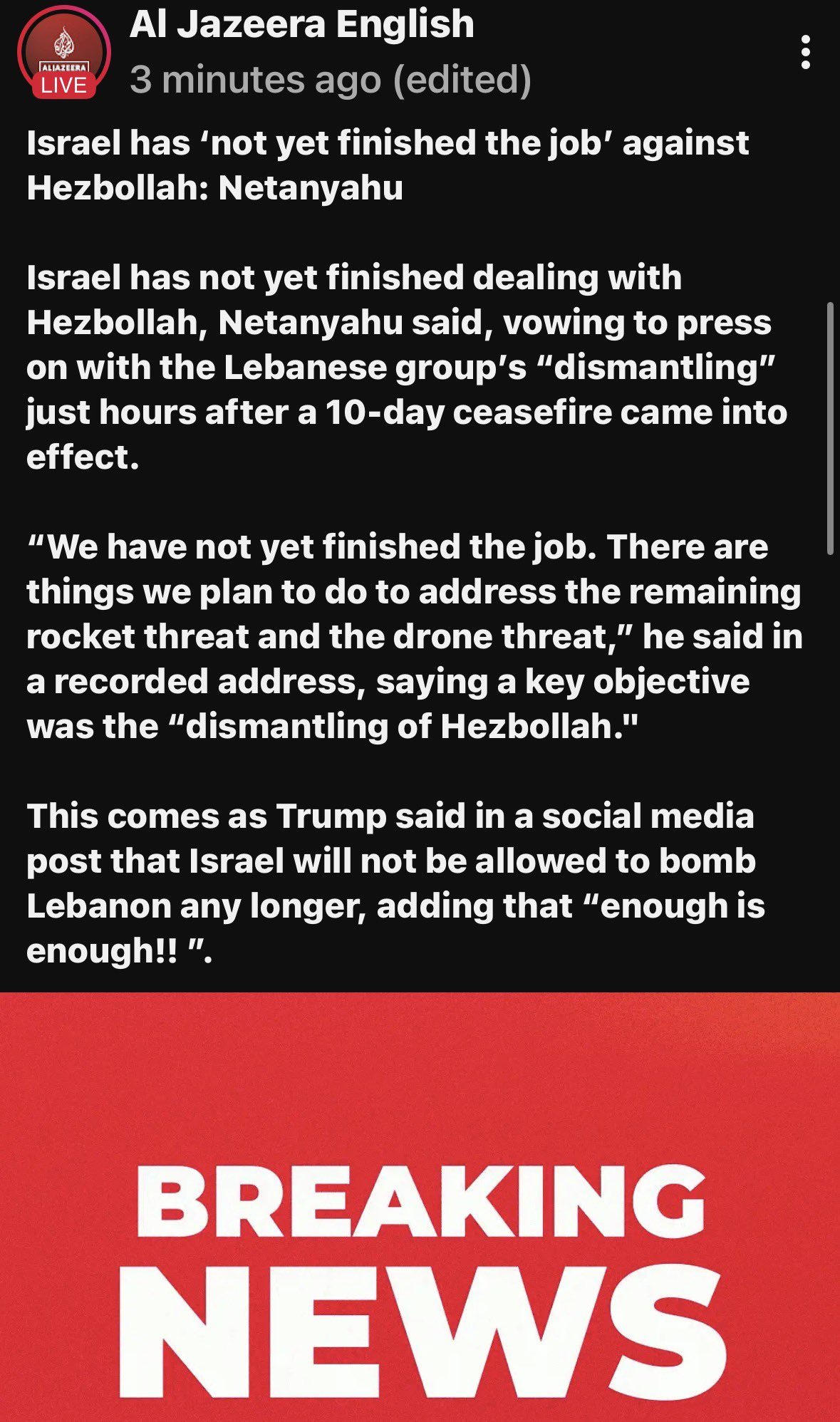 - Cela suit le nouveau cessez-le-feu de 10 jours entre Israël et le Liban (entré en vigueur cette nuit), annoncé par Trump. L’Iran l’a accueilli favorablement, car Téhéran réclamait une trêve au Liban comme condition aux négociations.