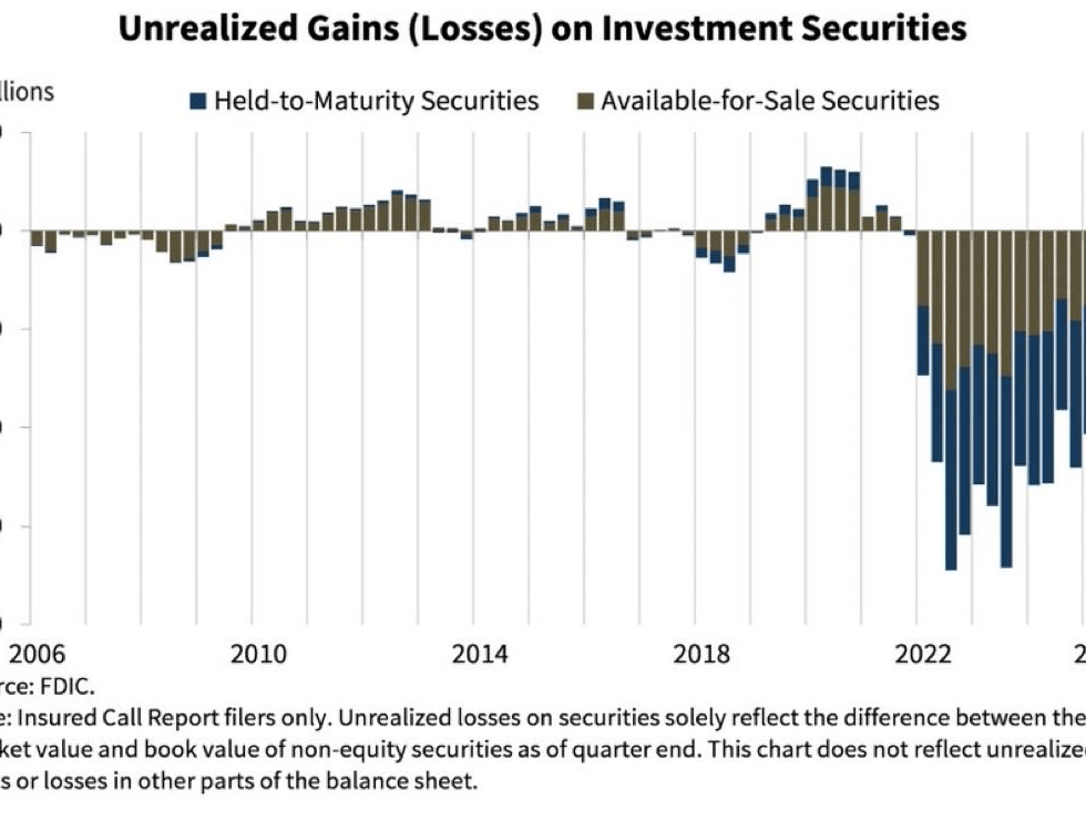Au deuxième trimestre 2025, les banques américaines détenaient environ 395 milliards de dollars de pertes latentes sur leurs titres de placement. Un foyer de crise possible.