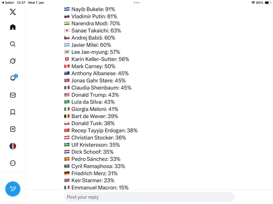 Taux de popularité des leaders dans le monde, Macron en bonne place!